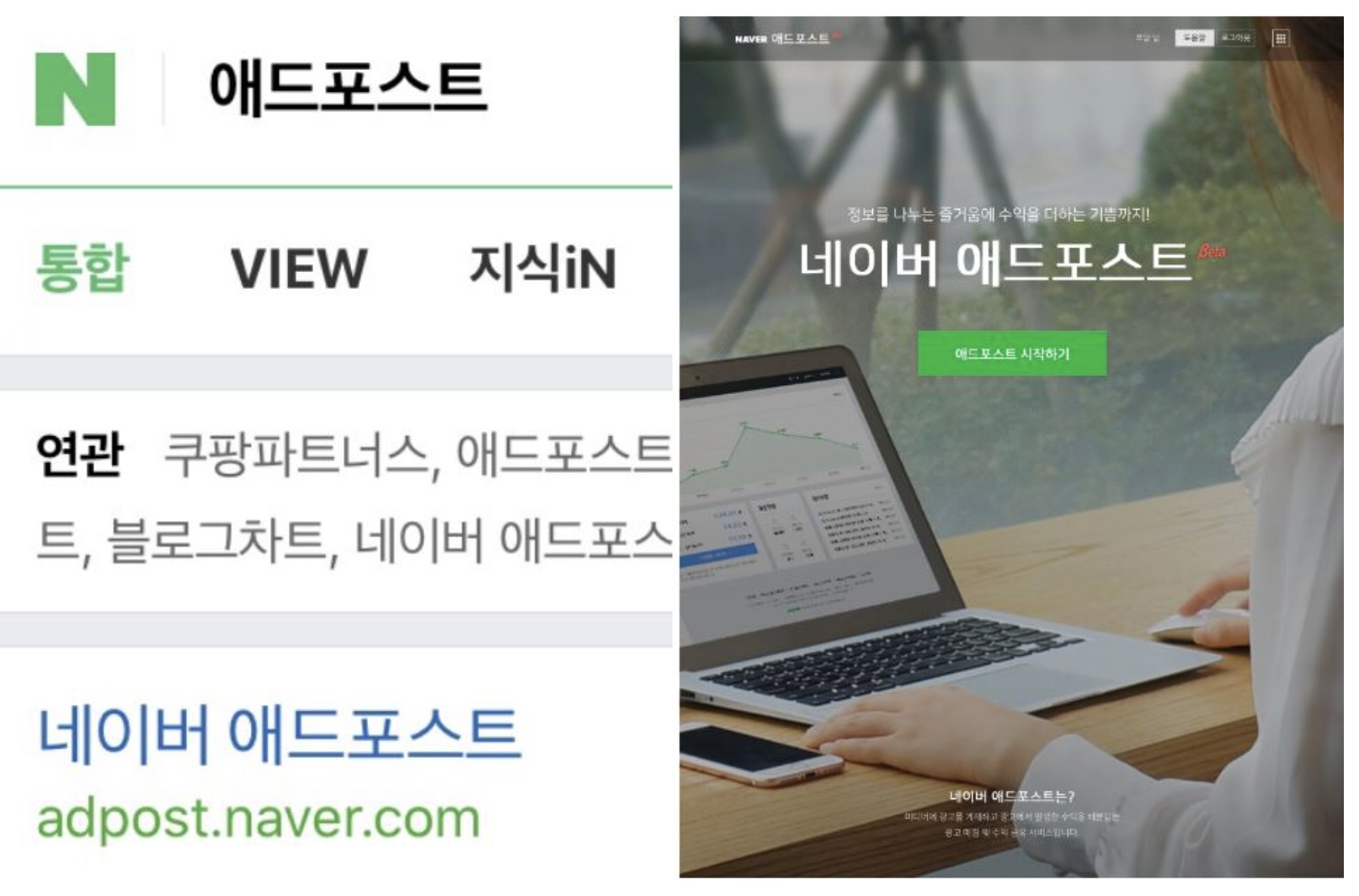 검색창에 ‘네이버 애드포스트’를 검색하면 위와 같은 화면이 나옵니다.